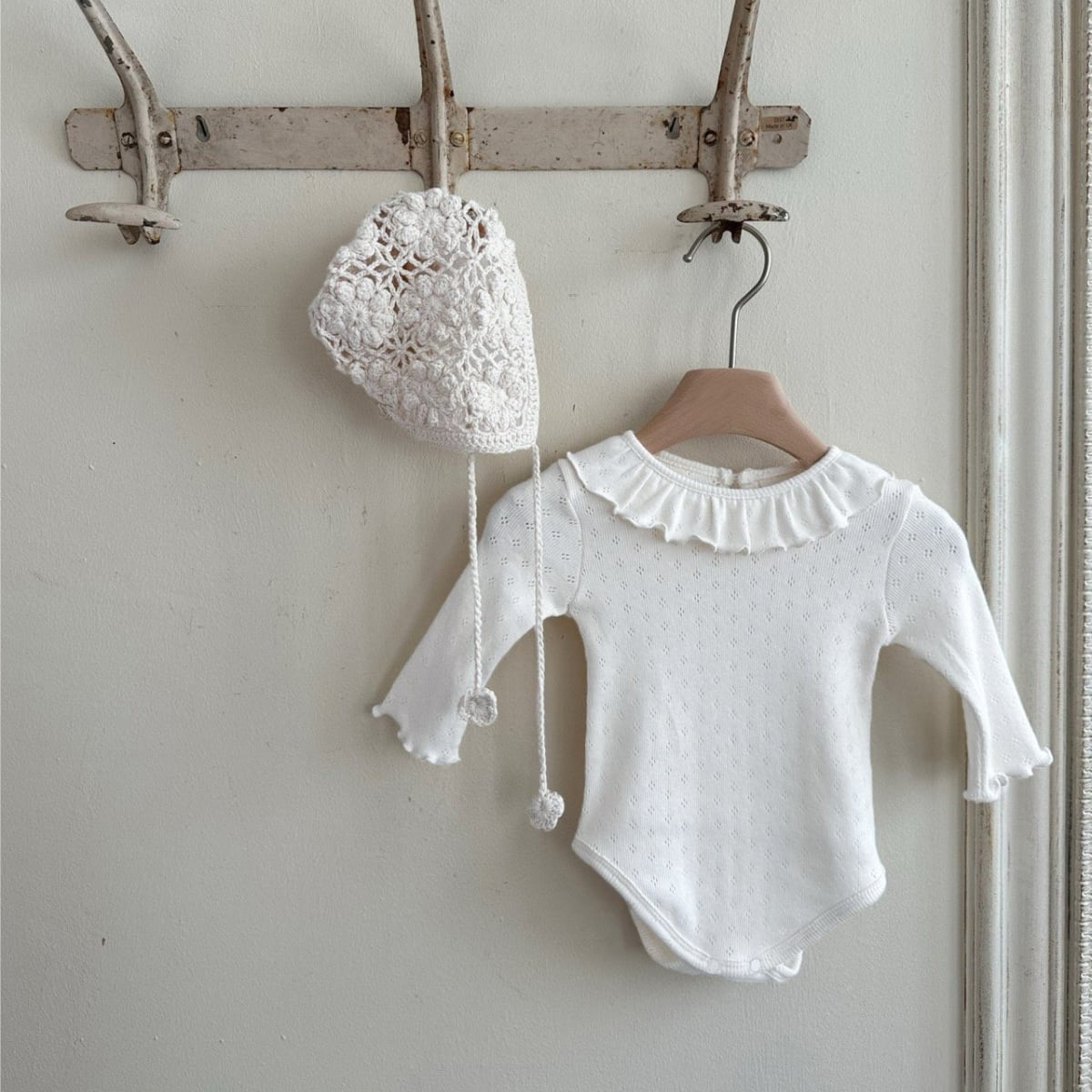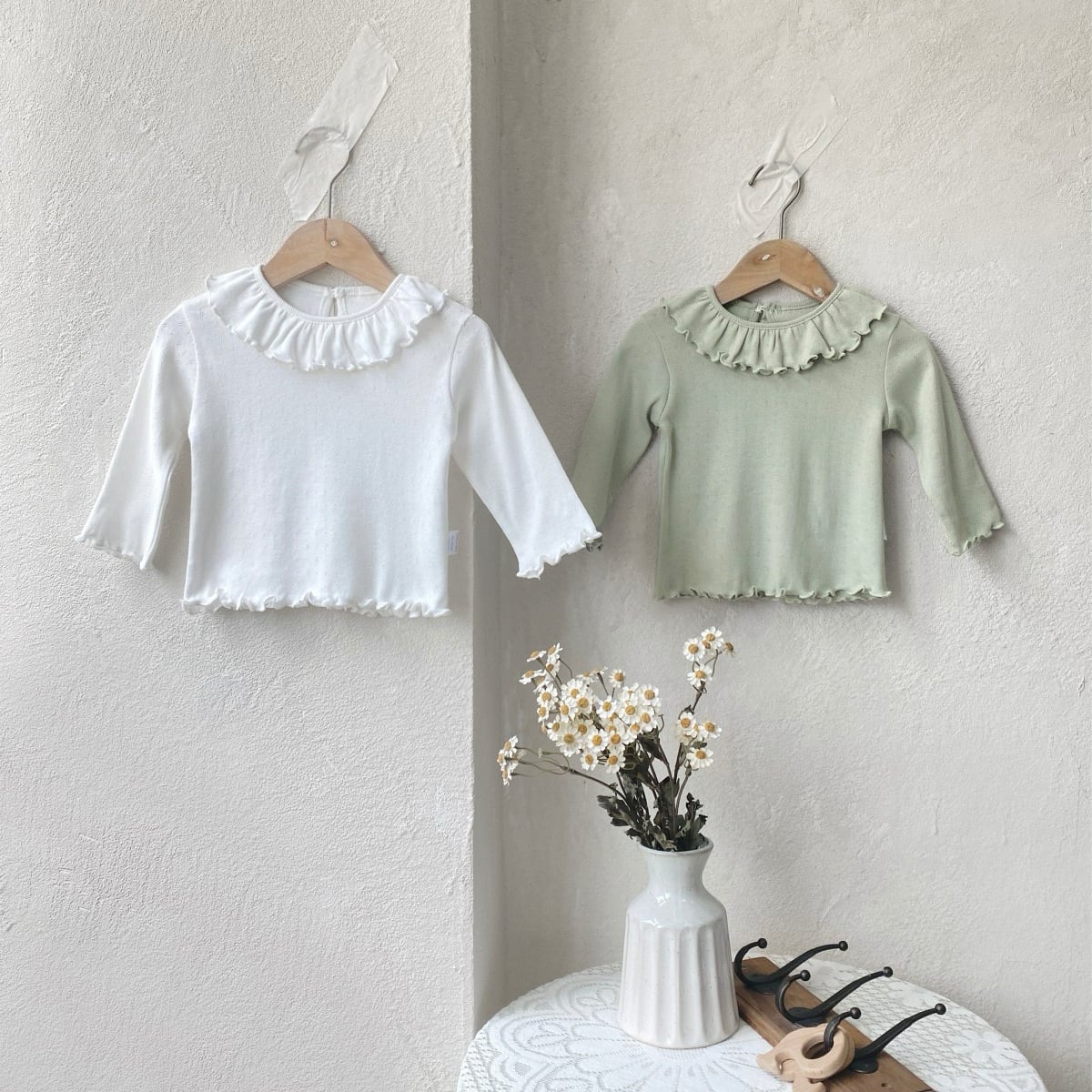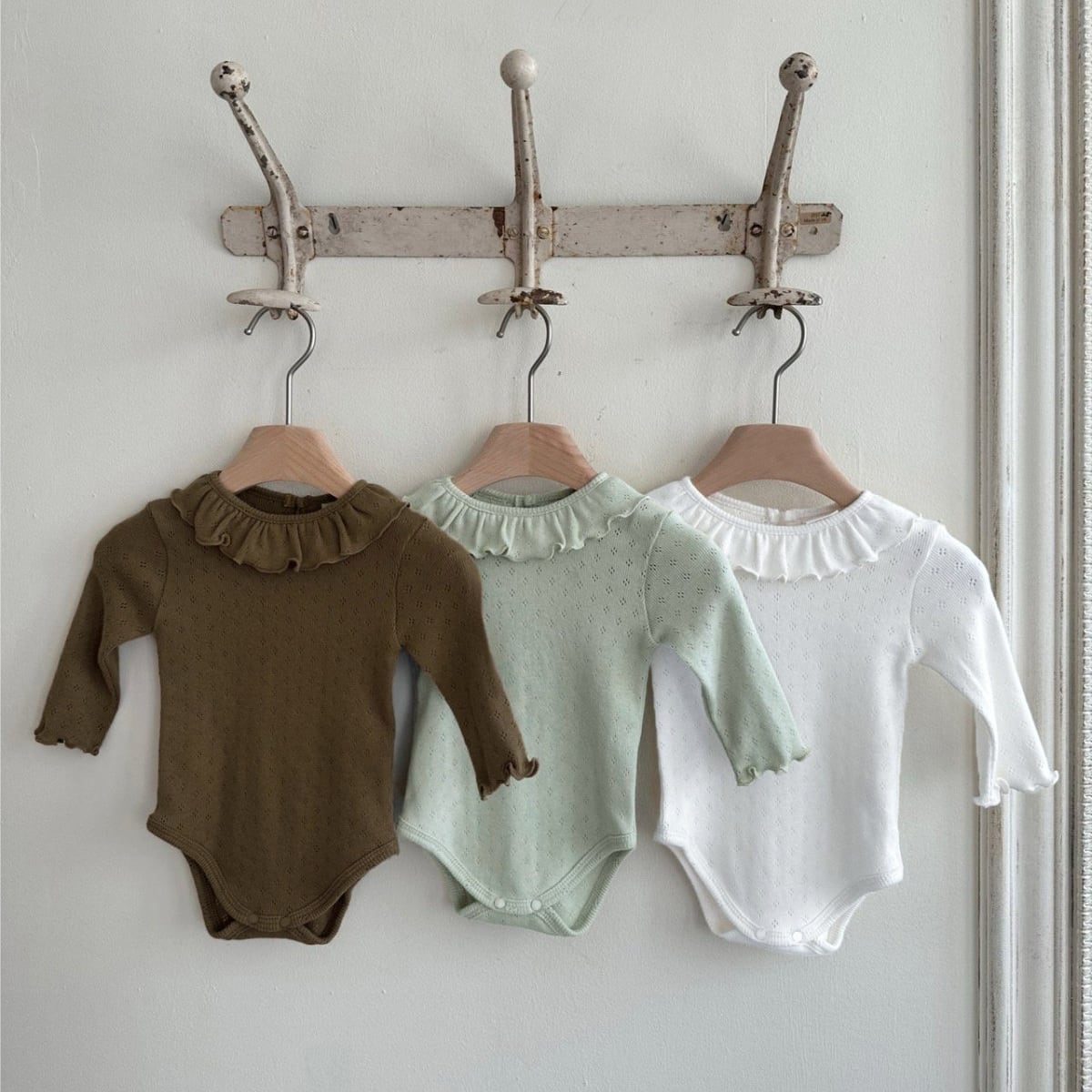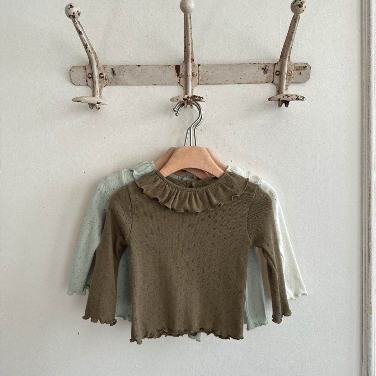 首元にふんわりフリルをあしらったデザインが可愛さを格上げし、シンプルながらもおしゃれな印象を与えてくれます。