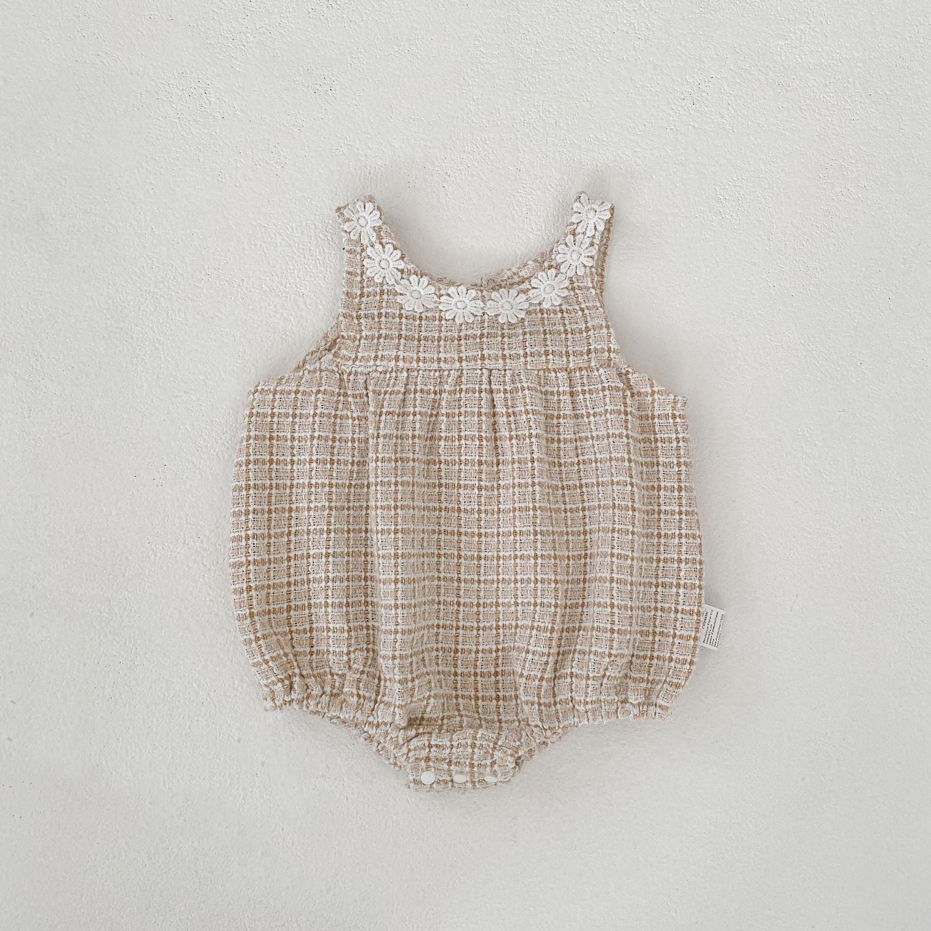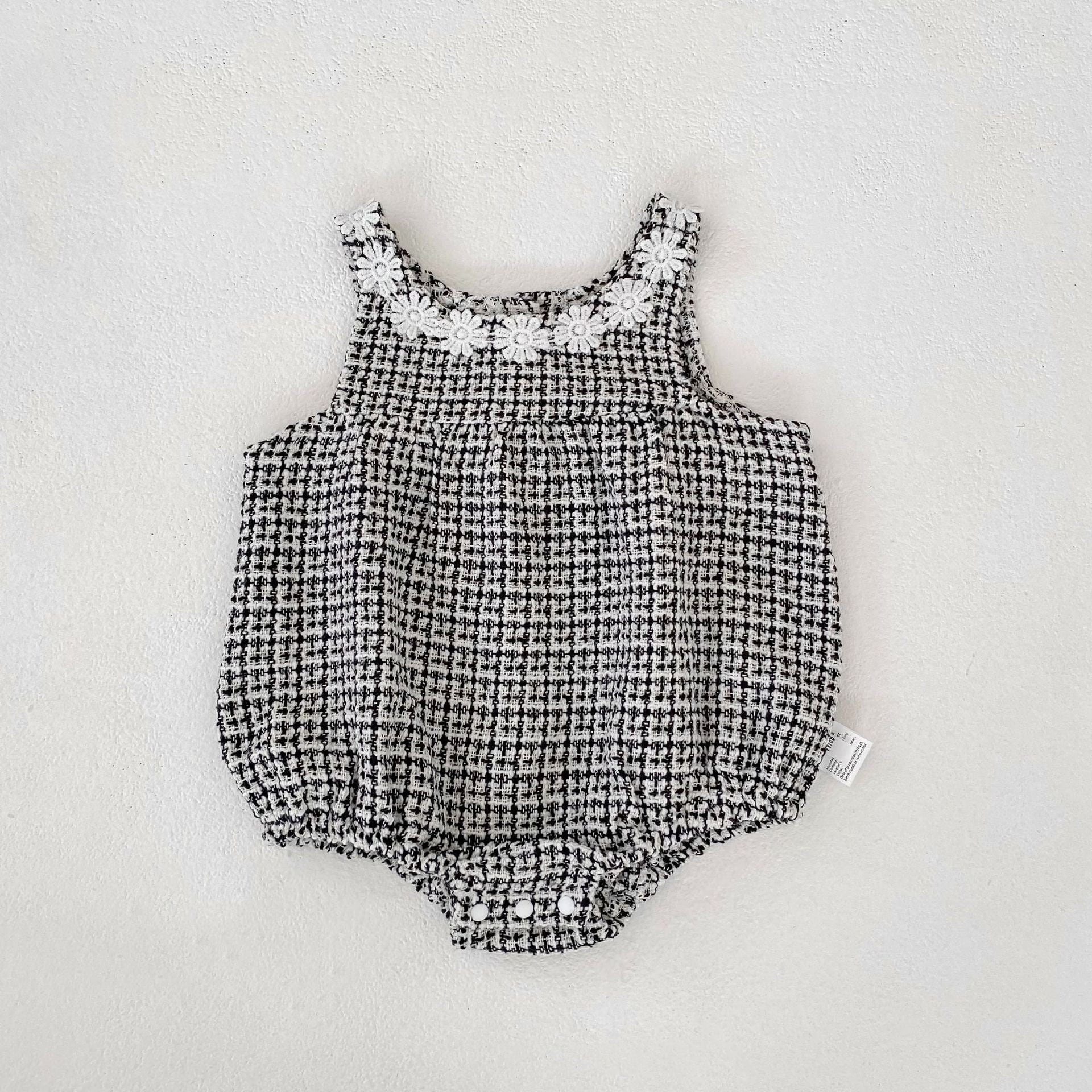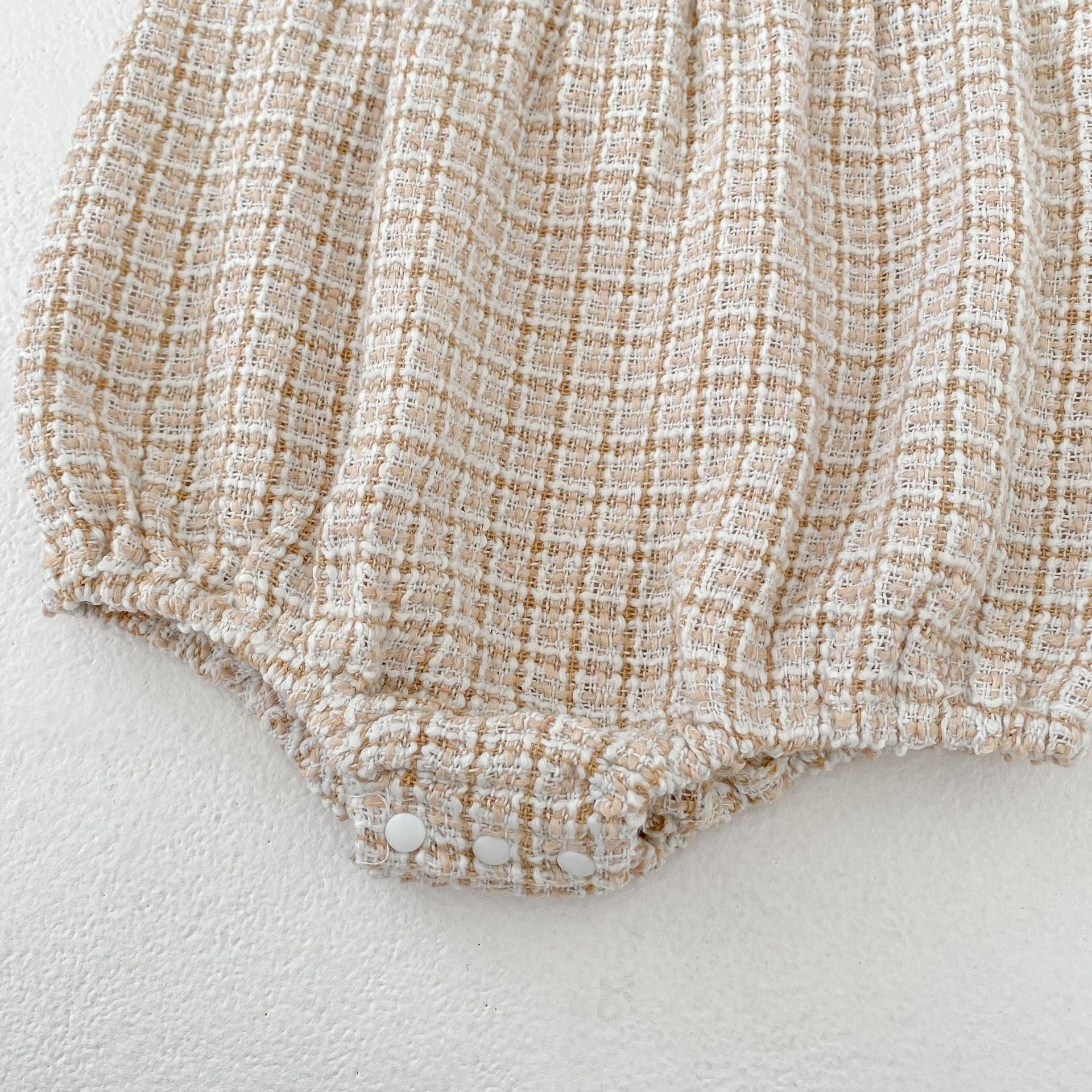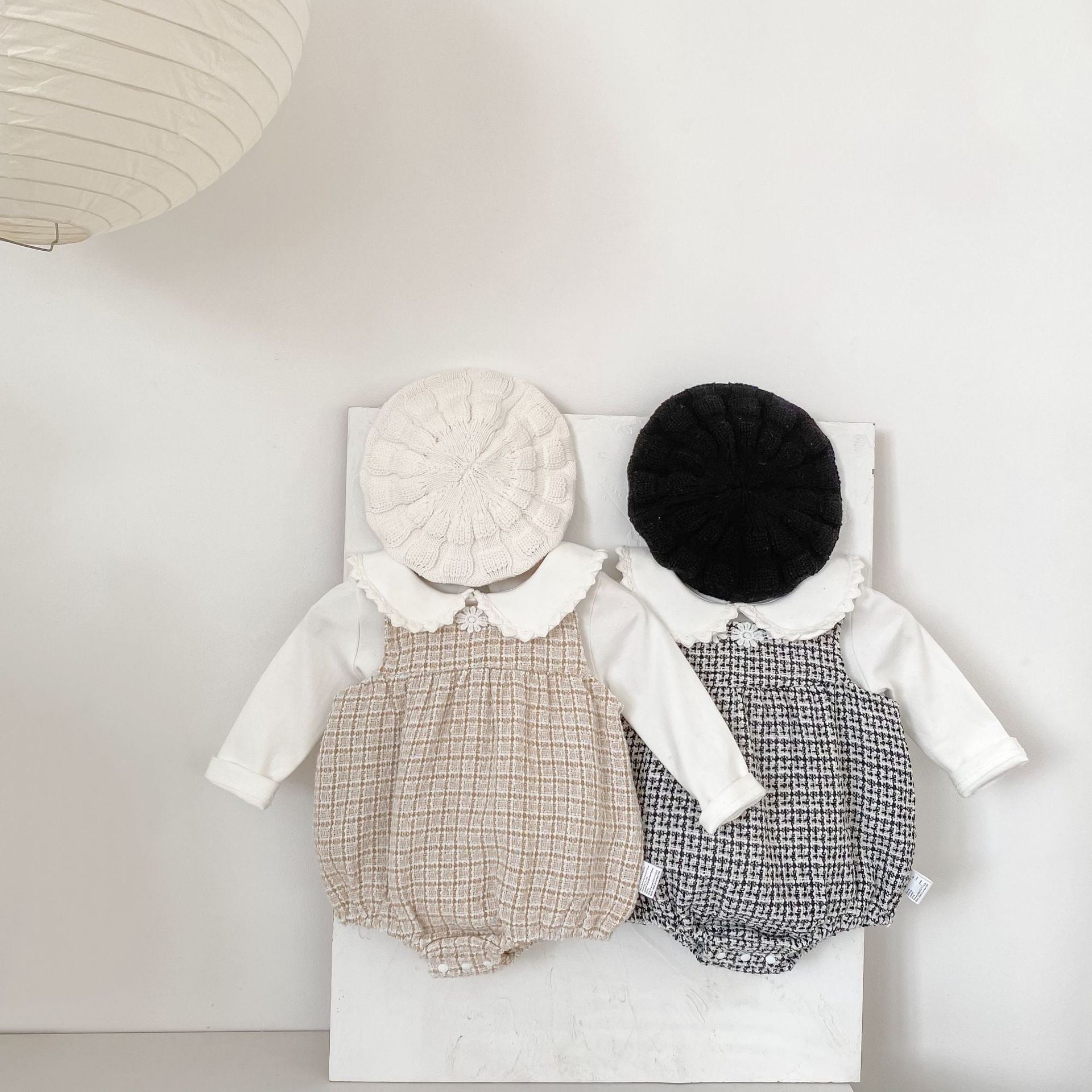 可愛らしいロンパースと上品なワンピースの2種類をご用意し、どちらもファッションセンスを高めるチェック柄ツイード生地を採用しています。