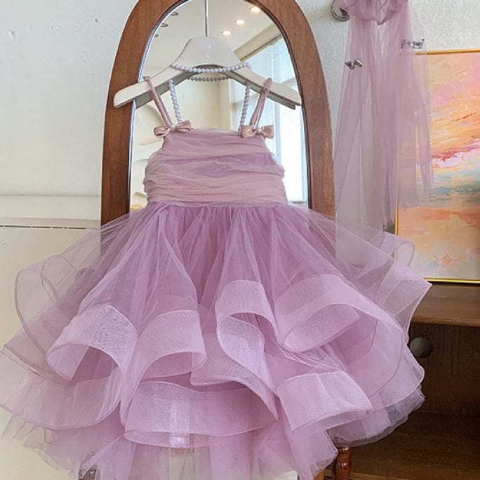 こちらは、まるでプリンセスのような華やかさを演出してくれるパープルのドレスワンピースです。