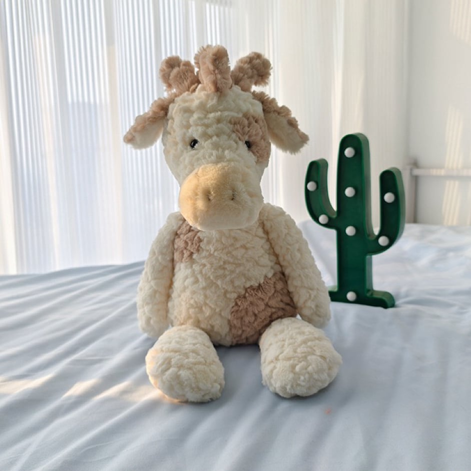 キリンは愛らしい角とやさしい表情が魅力で、まるで本物のような可愛らしさ。