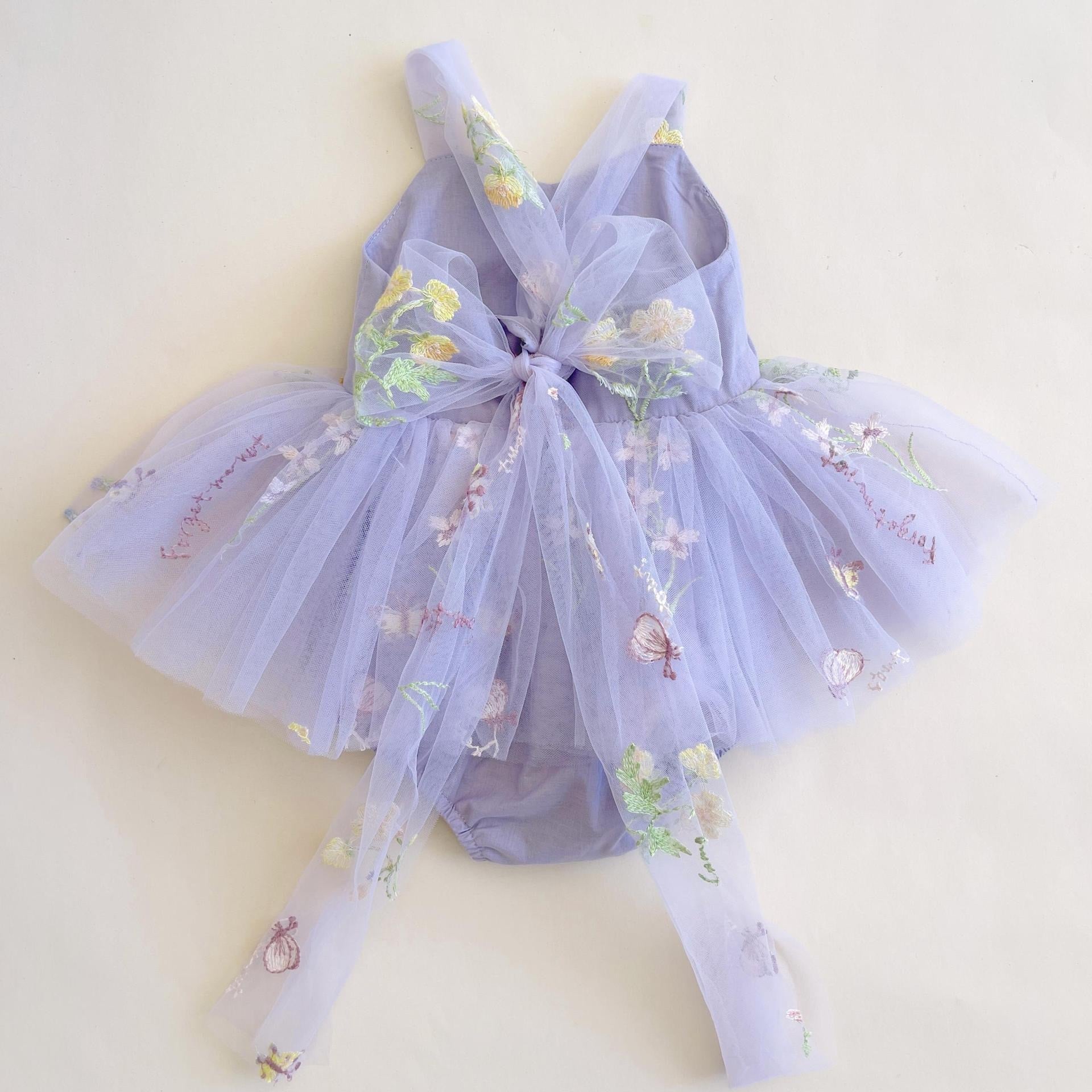 ,花刺繍×チュールドレス風ベビーロンパース