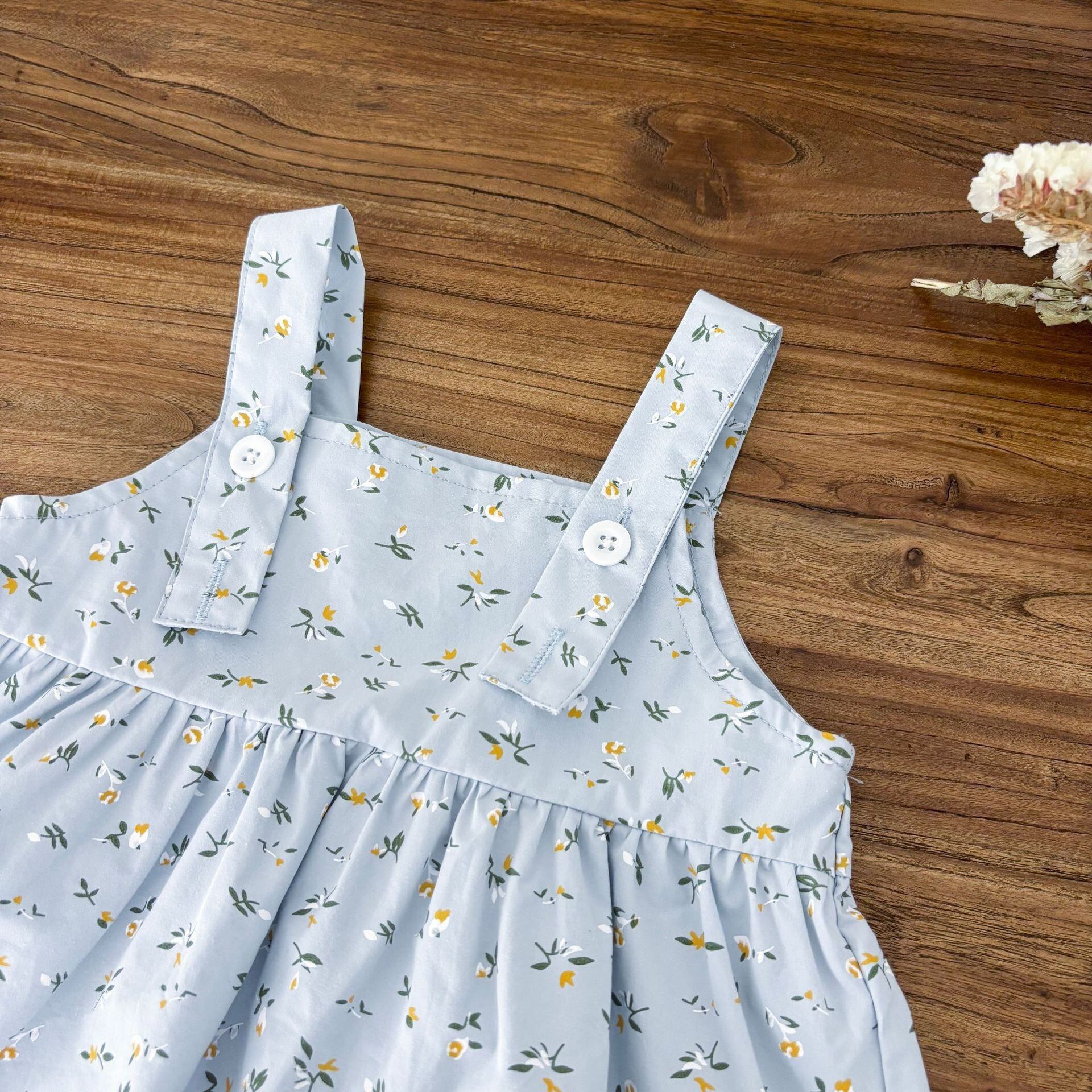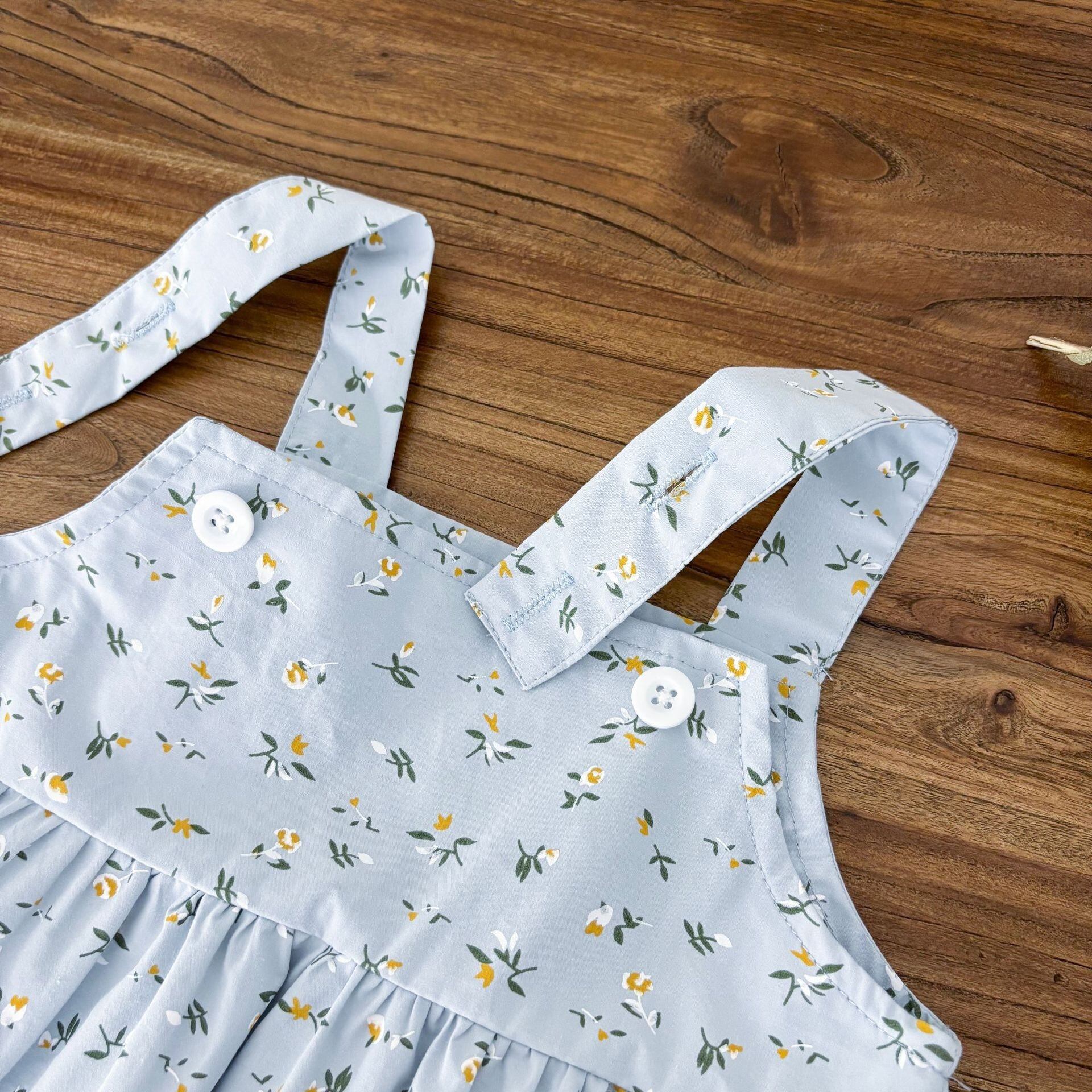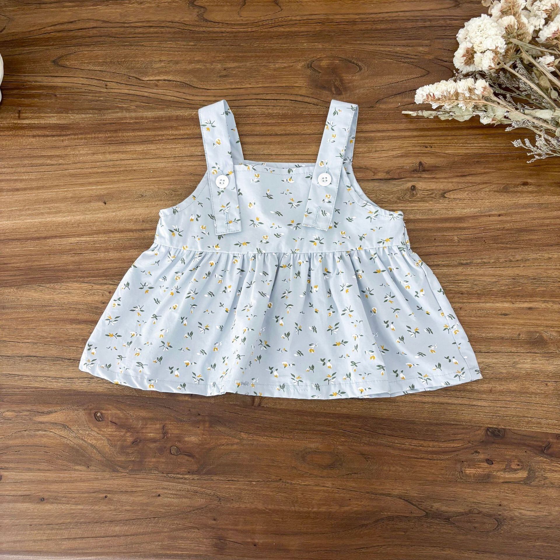 また、爽やかなブルーに小花柄を散りばめたスカートで、やさしくナチュラルな雰囲気を演出します。