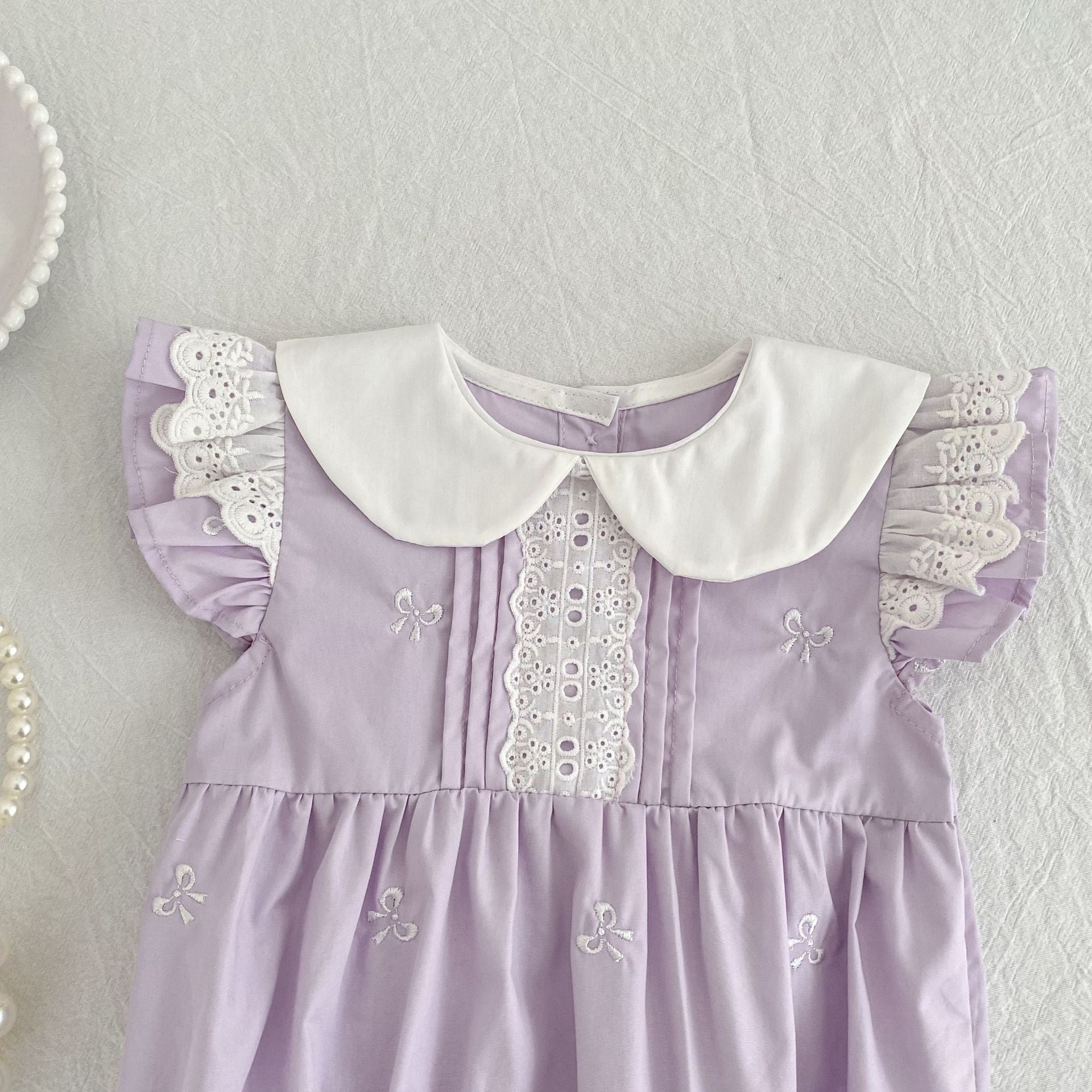 襟元は白いフリルデザインで、清楚で愛らしい印象をプラスしています。