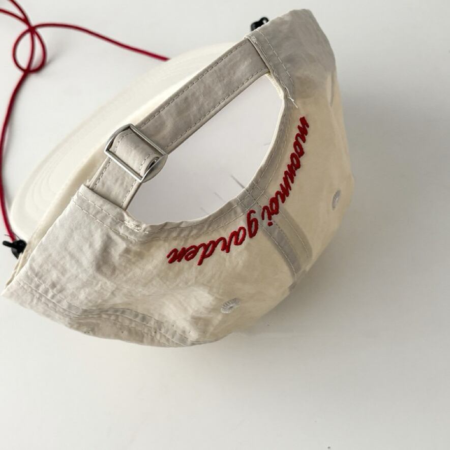 あご紐付きで、風の強い日でも安心してかぶることができますし、取り外しも可能なのでお好みに合わせて使えます。