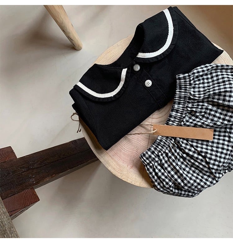 ,ベビー女の子男の子セーラー襟長袖ブラウス上下セット チェック柄かぼちゃパンツ かわいい春秋冬服 出産お祝い lwb0026