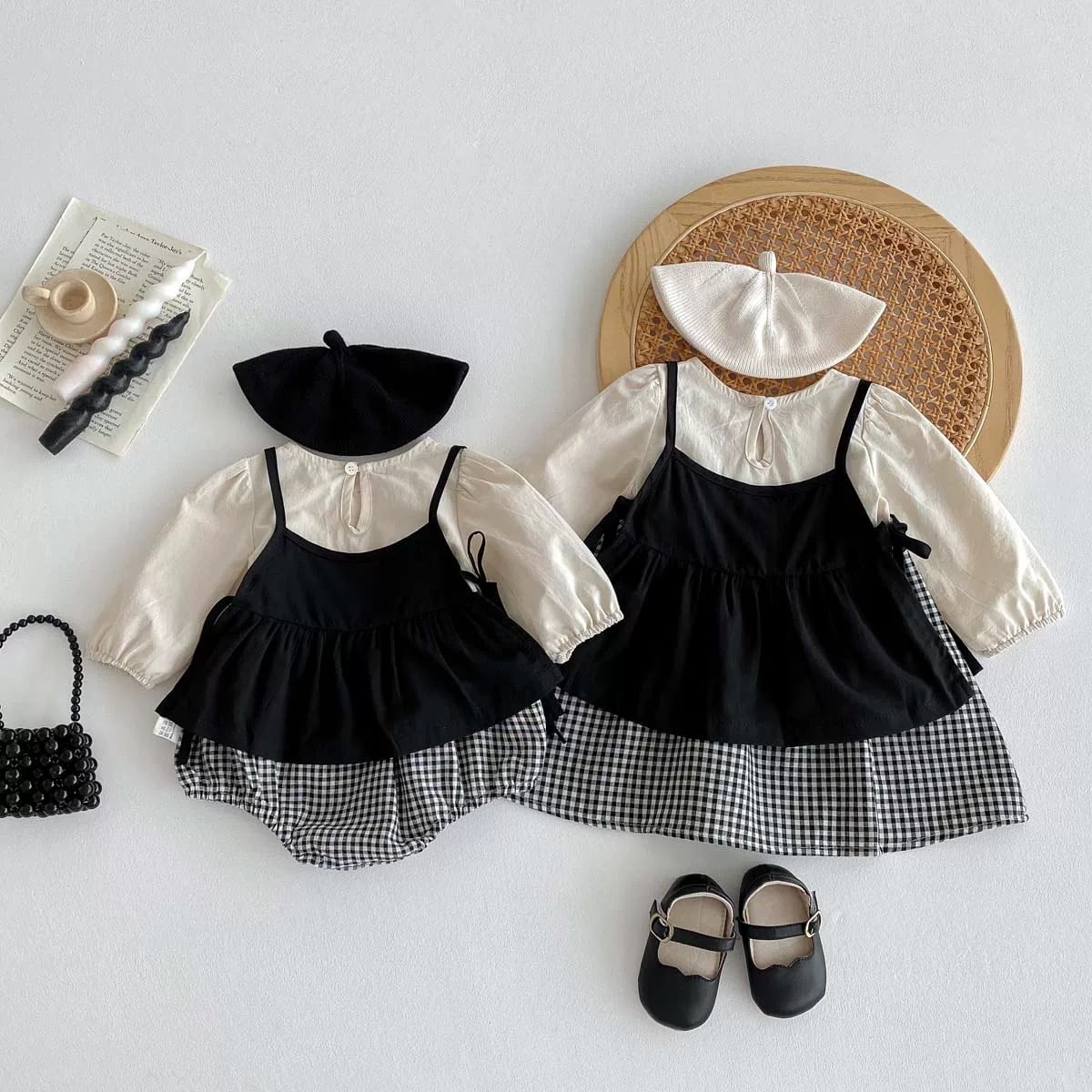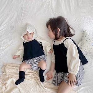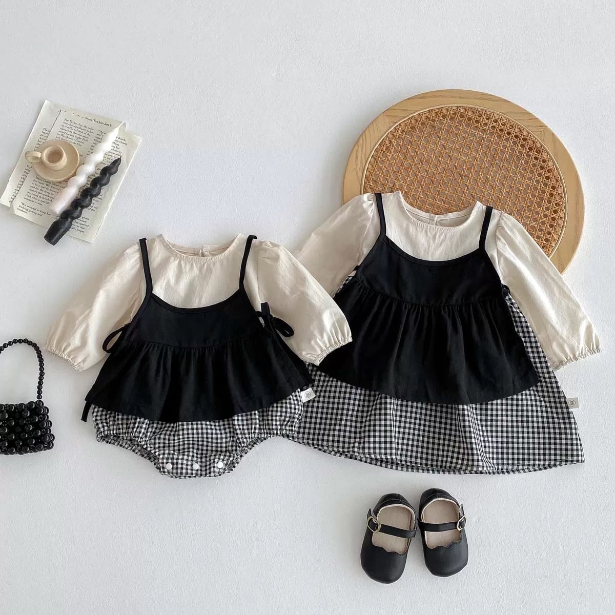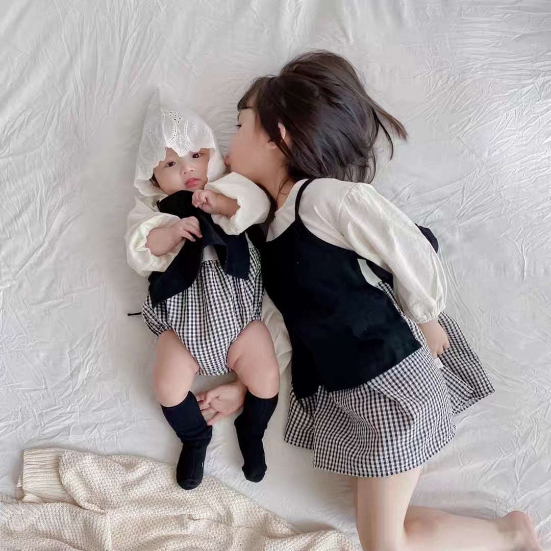 ,ベビー女の子チェック柄ロンパースセットアップ 姉妹お揃い lwb0065