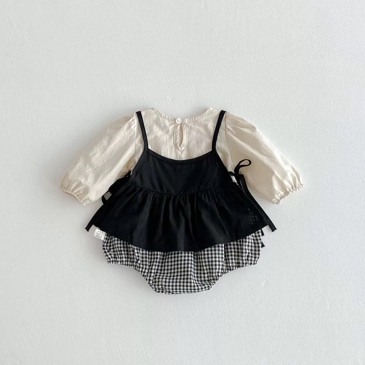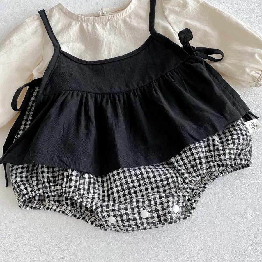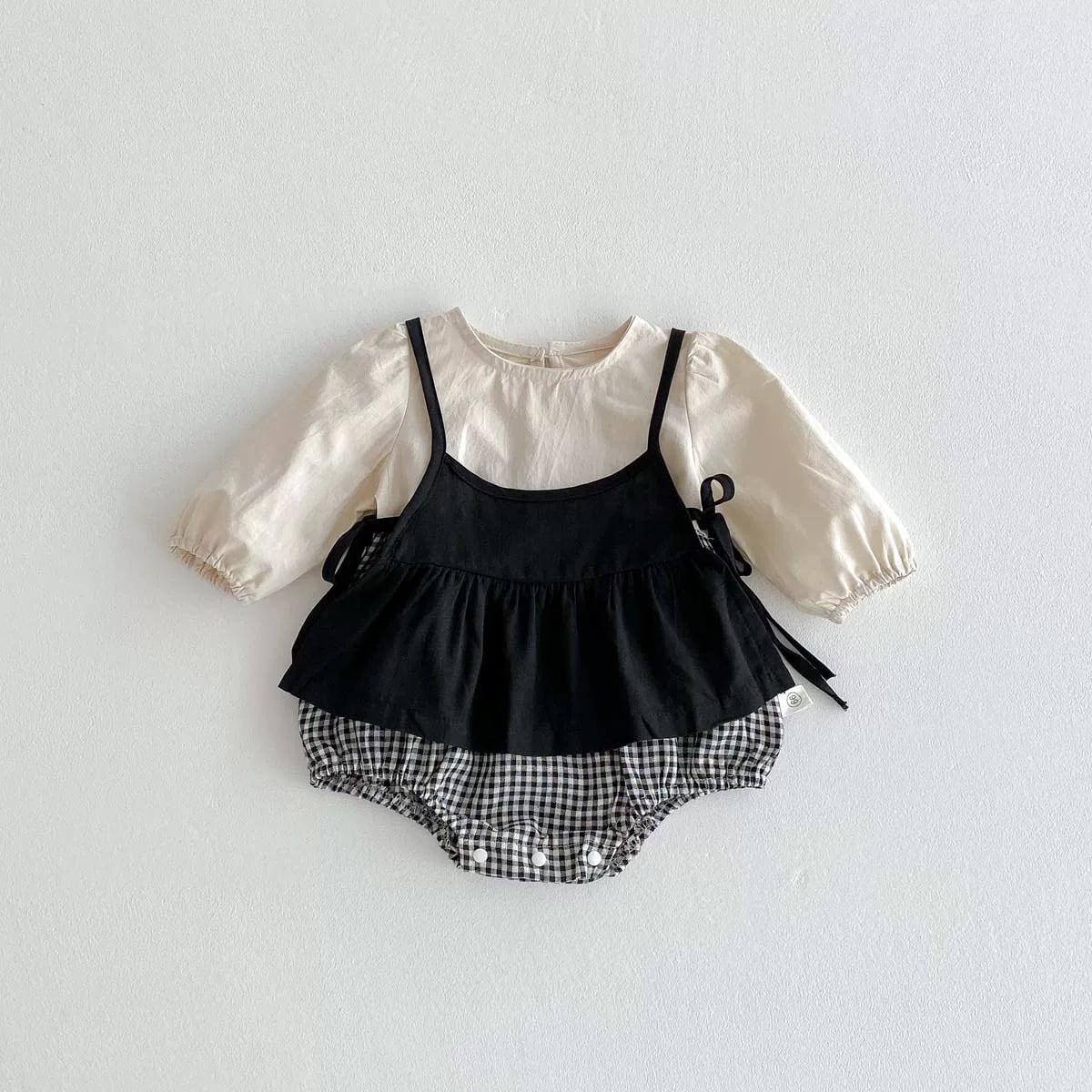 ,ベビー女の子チェック柄ロンパースセットアップ 姉妹お揃い lwb0065