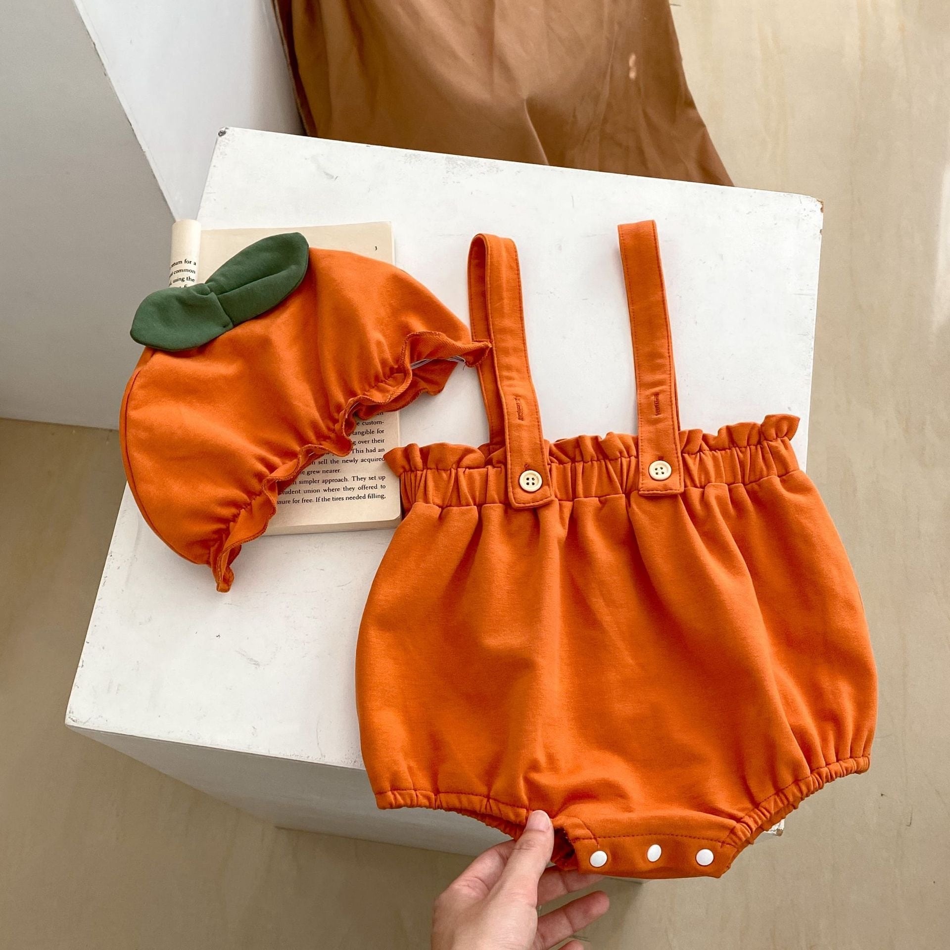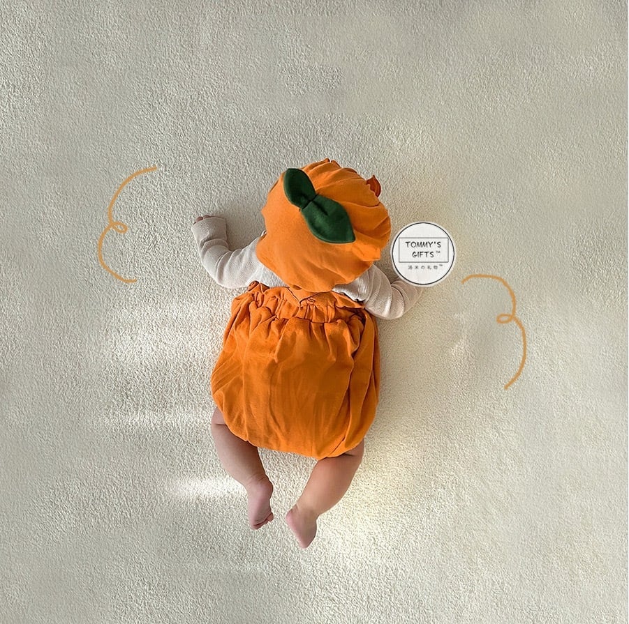 ,ベビー女の子男の子かぼちゃサロペットロンパース 帽子付き ハロウィン衣装 コスチューム パーティー lwb0001