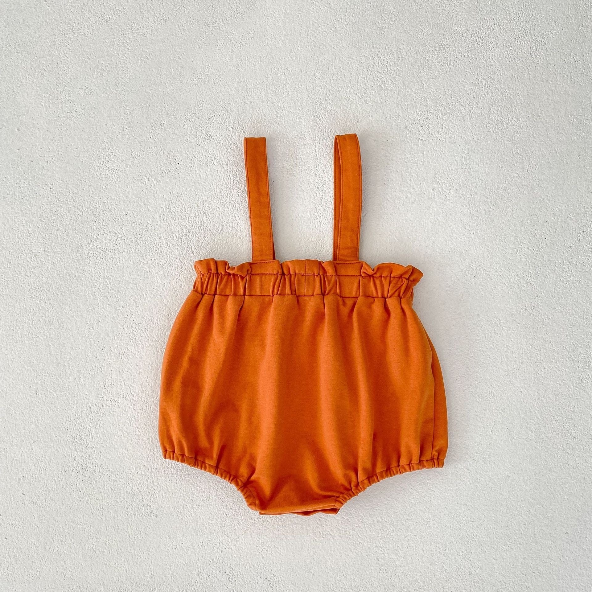 ハロウィンにぴったりのかぼちゃサロペットロンパースが登場しました!