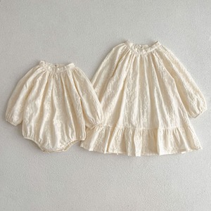 ワンピースとロンパースの2つのスタイルでお揃いの姉妹コーデを楽しめます。