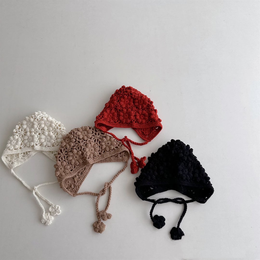,ベビー幼児女の子花かぎ編みボンネット 秋冬ニット帽子 出産お祝い ニューボーンフォト lwa0075