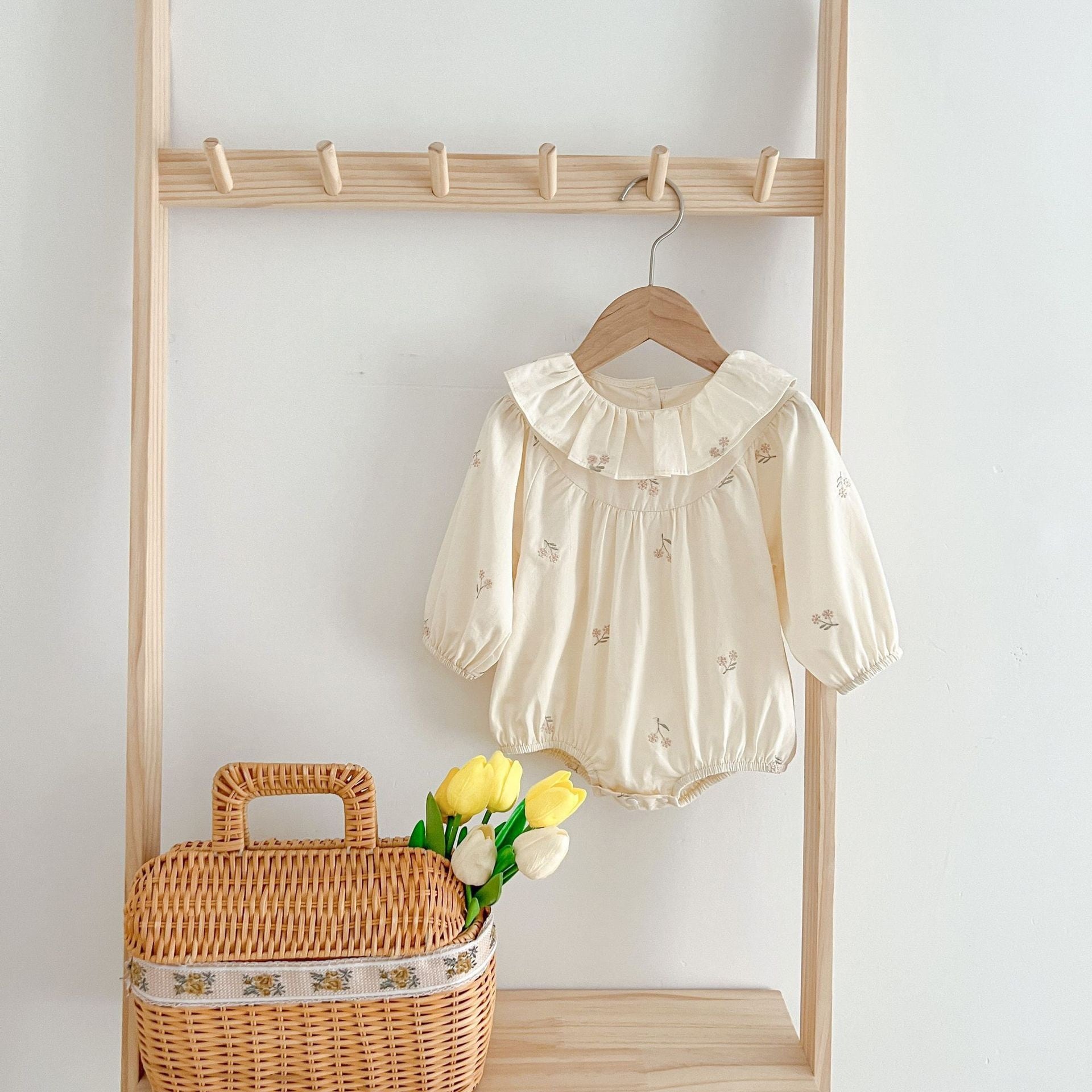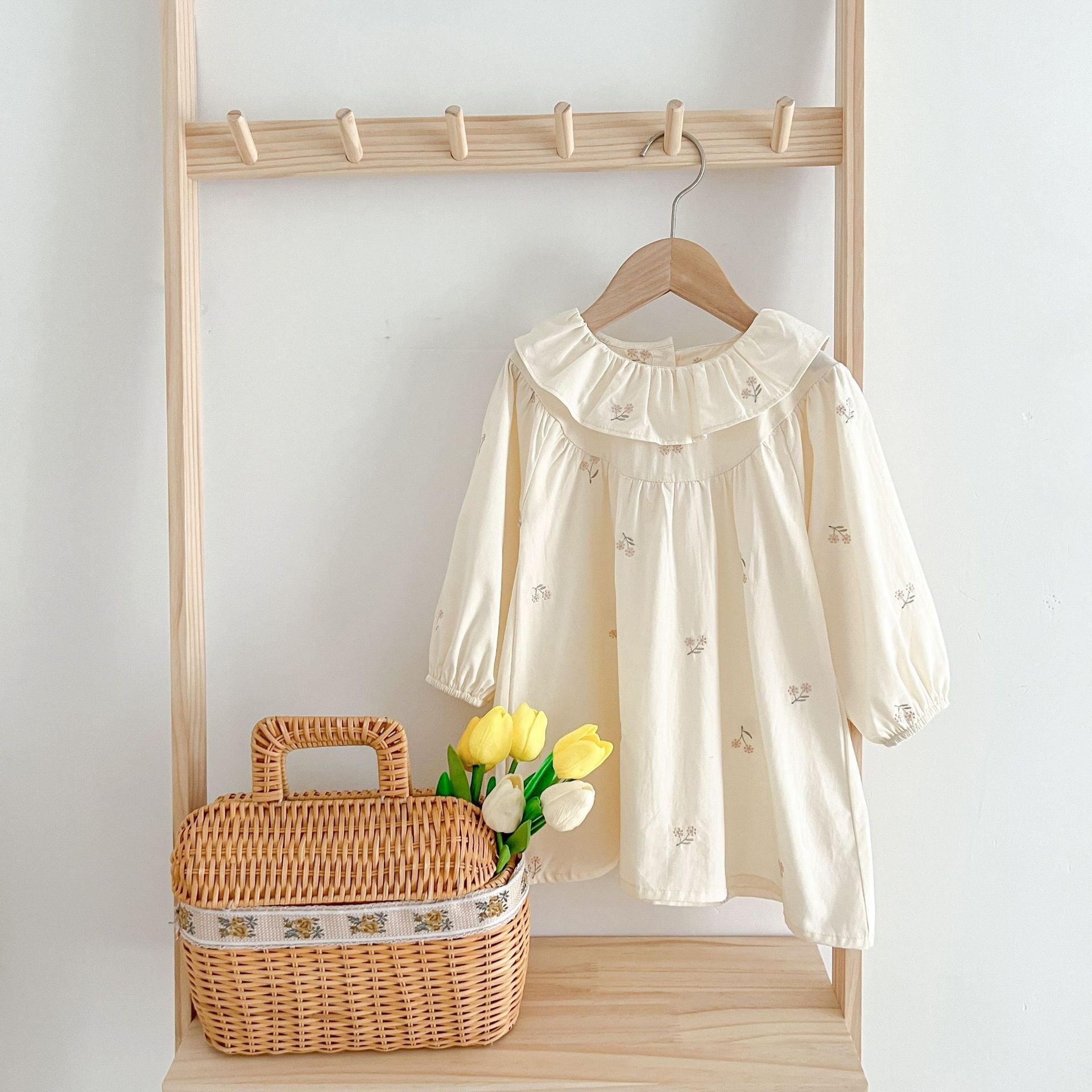 ,ベビーキッズ女の子小花柄刺繍付き長袖ロンパース ワンピース リンクコーデ 姉妹お揃い春服 韓国子供服 lwa0089