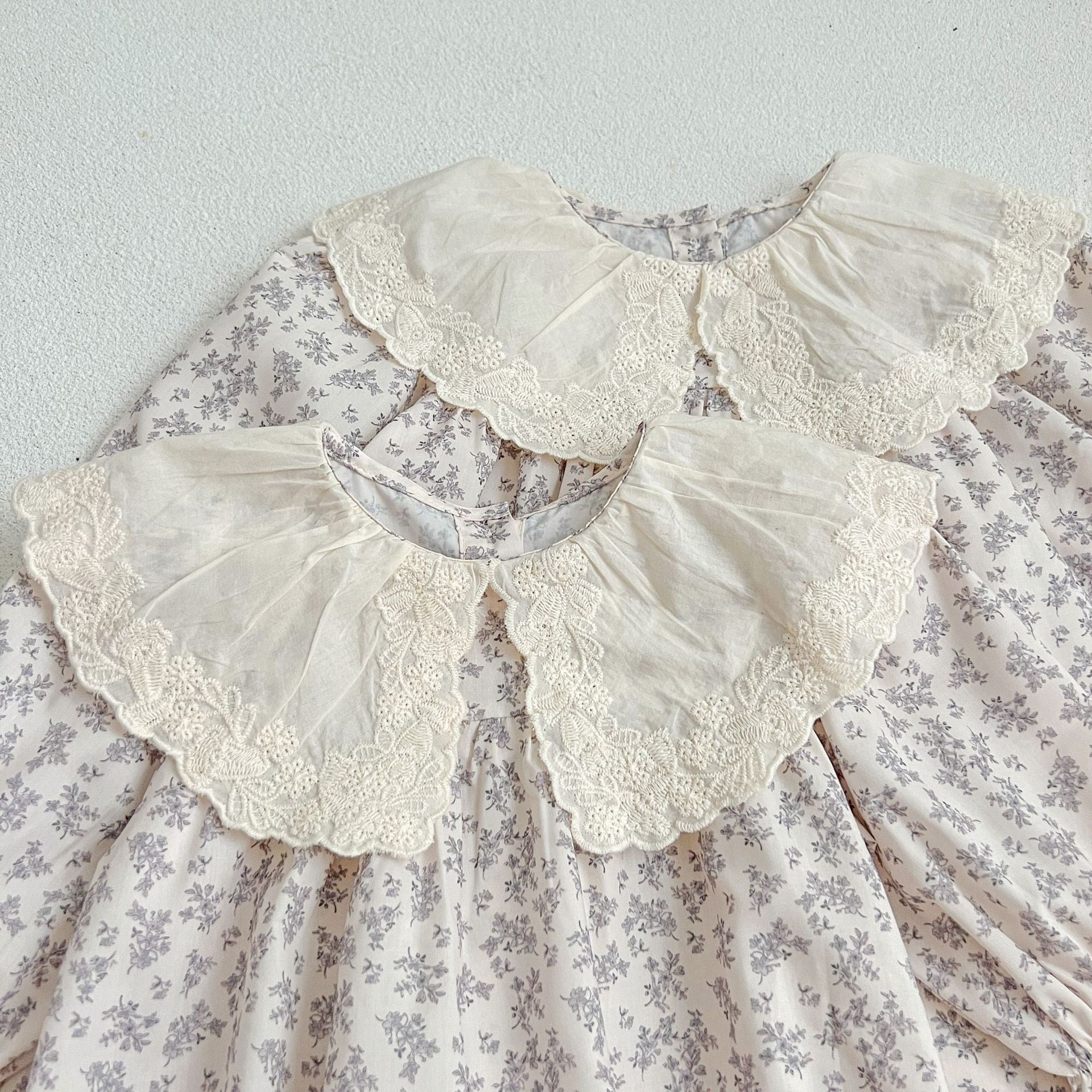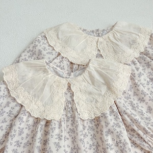 ,ベビーキッズ女の子レース襟付き小花柄長袖ロンパース ワンピース リンクコーデ 姉妹お揃い春服 韓国子供服 lwa0081