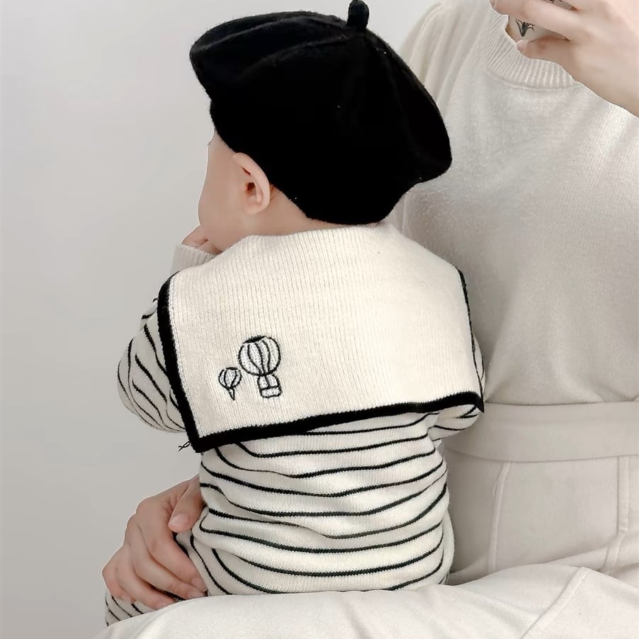 グレー、ボーダー、ネイビーの3色展開で、男女兼用デザインなのでギフトにも嬉しい一枚です。この秋冬、可愛いコーディネートで大切なお子さまの成長を見守りましょう!