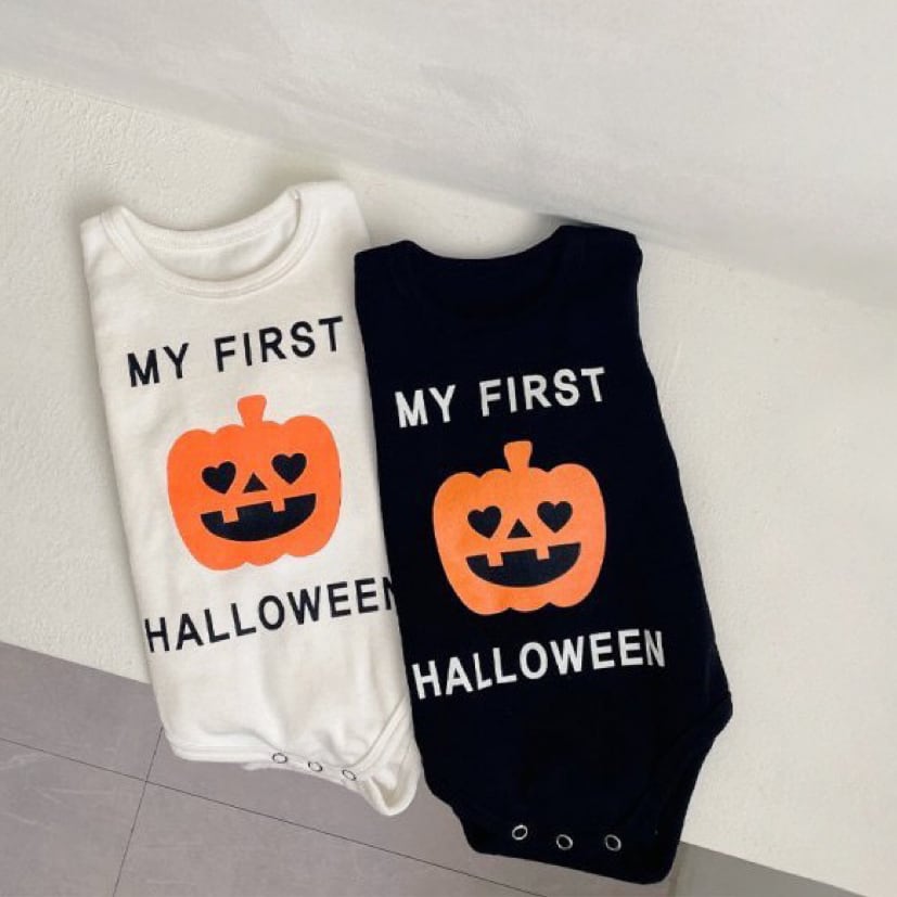 「First Halloween」の英文字プリントがアクセントになったデザインで、ハロウィンパーティーに最適な一枚です。