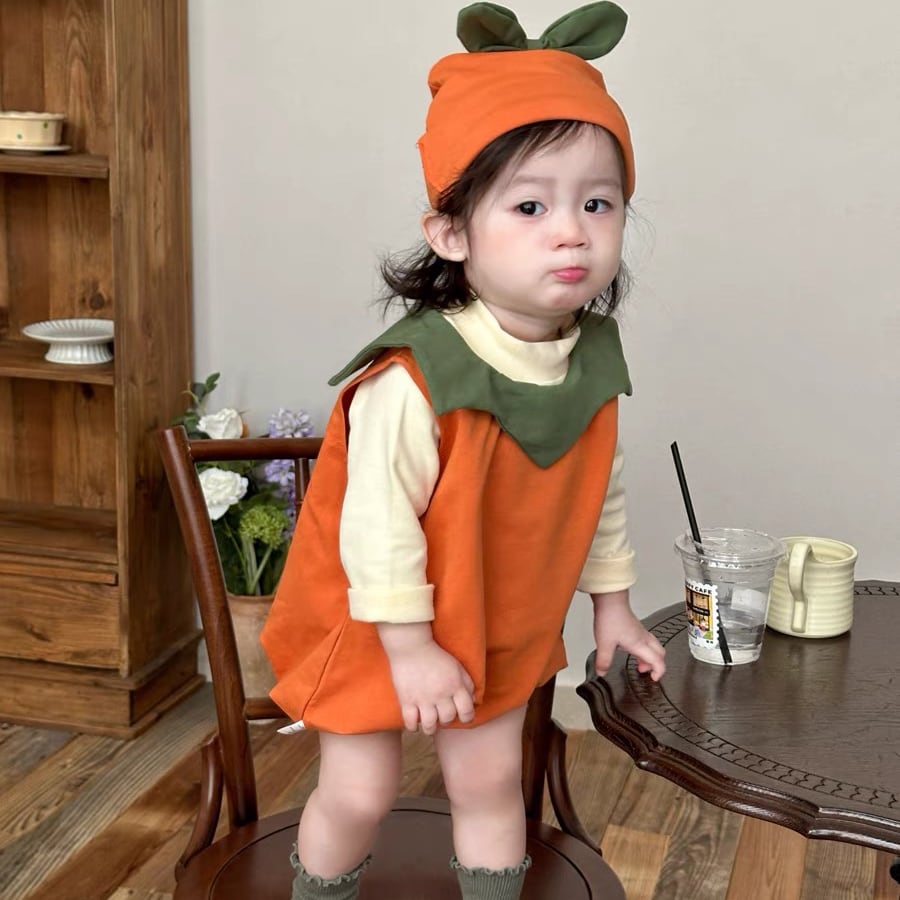 ,ベビー女の子男の子かぼちゃノースリーブロンパース 帽子付き ハロウィン衣装 コスチューム パーティー lwb0097