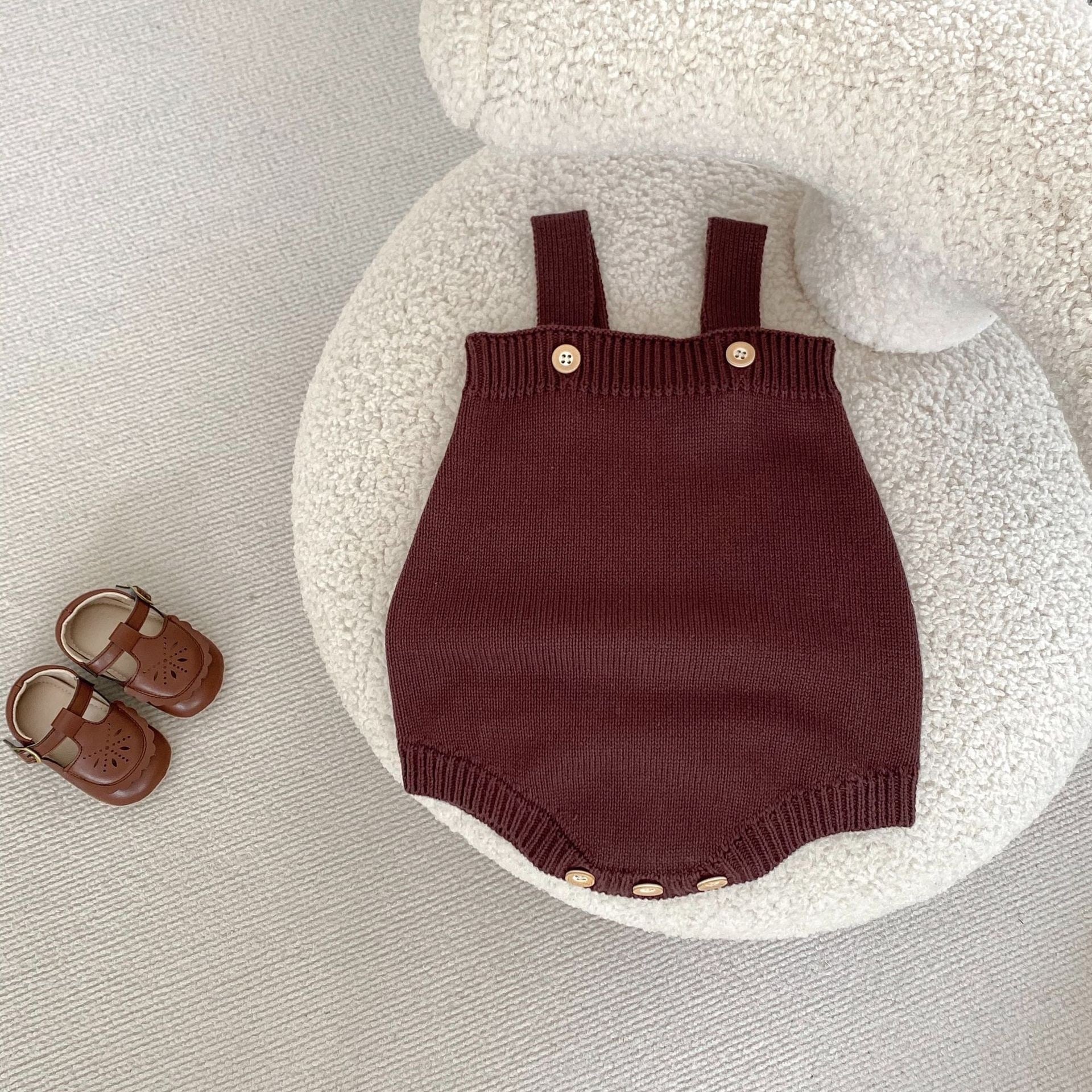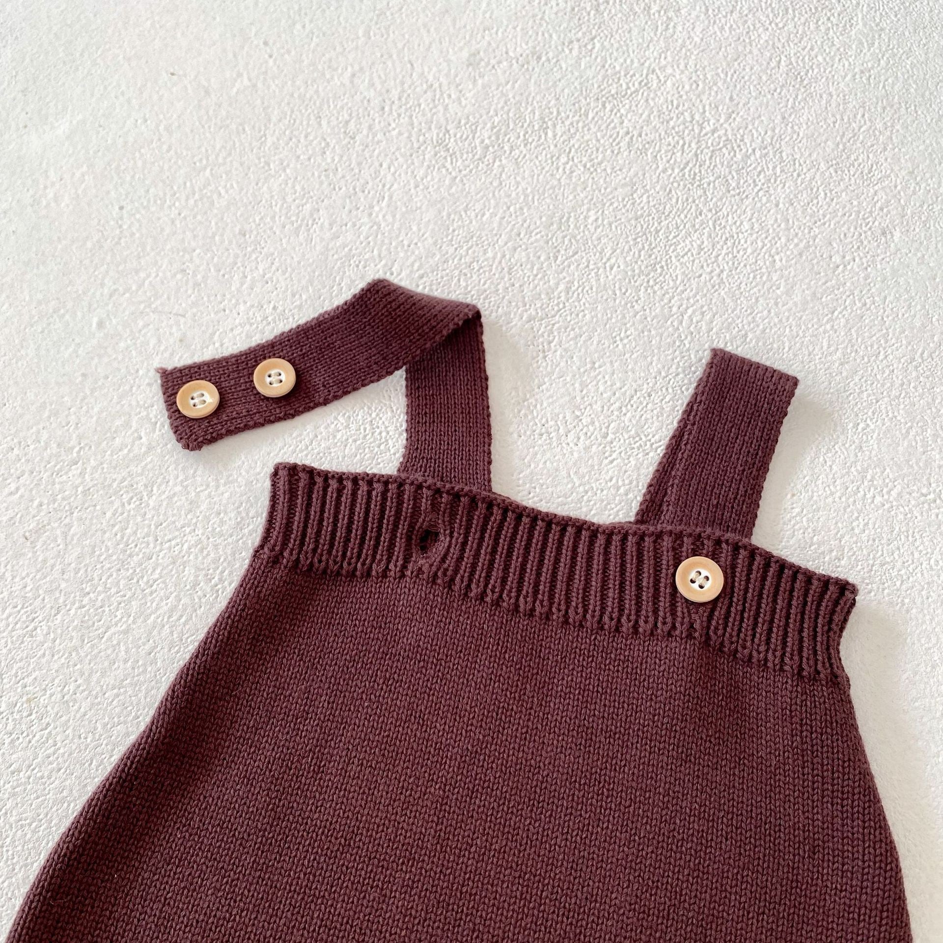 サロペットロンパースは、ブラウンカラーで落ち着いた印象を与え、かわいらしさと上品さを両立させます!