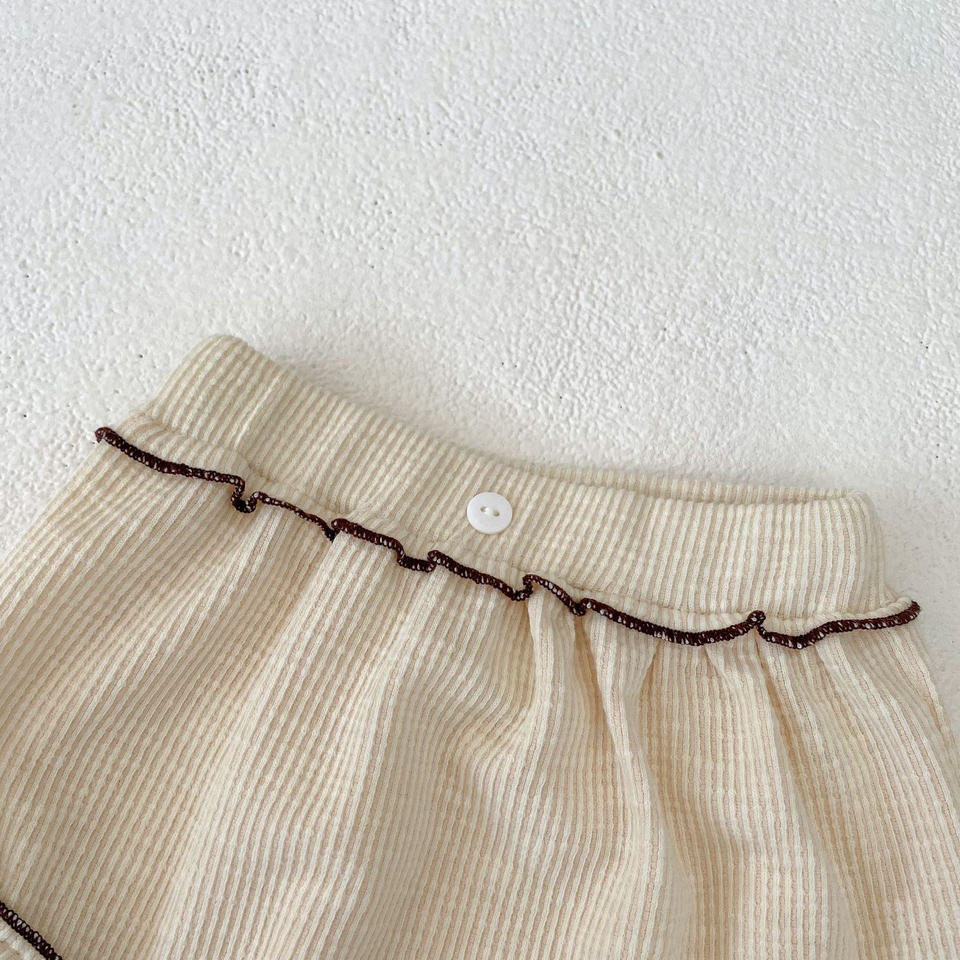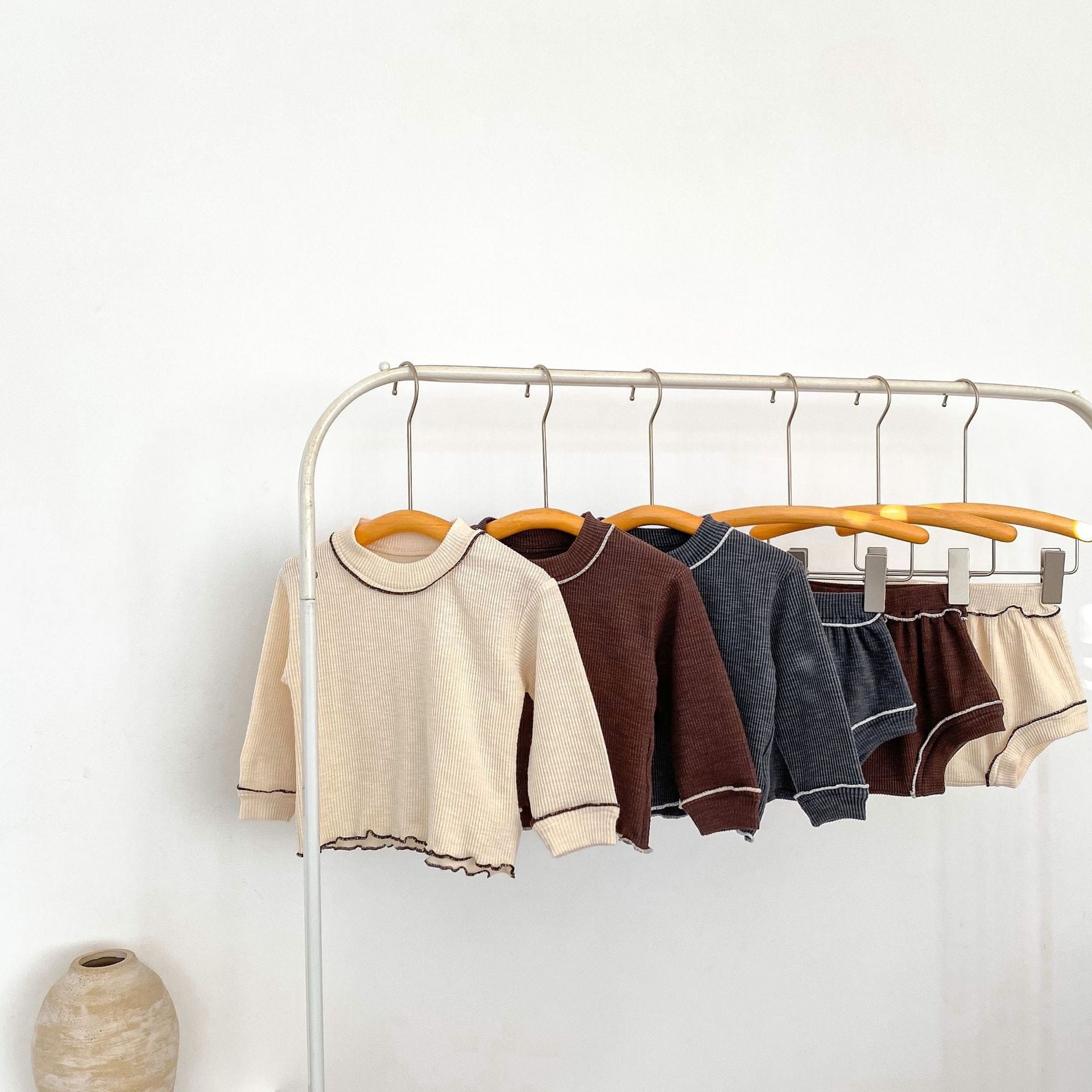 ,ベビー幼児キッズ女の子男の子バイカラーセットアップ 長袖トップス ブルマパンツ 春秋冬ベビー服 アイボリー ブラウン ダークブルー lwb0152